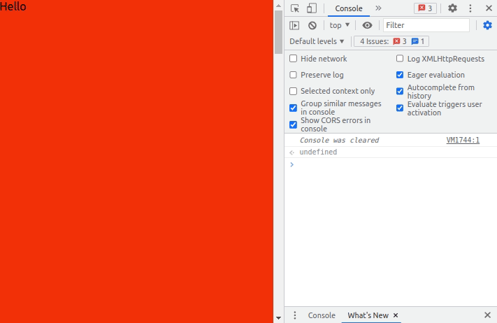 ์ฝ˜์†”์ฐฝ์— ์Šคํฌ๋กค์„ ๋ฐ‘์œผ๋กœ ๋‚ด๋ฆด ๋• scroll down ์ด, ์œ„๋กœ ์˜ฌ๋ฆด ๋• scroll up ์ด ์ถœ๋ ฅ๋˜๋Š” ๊ฑธ ๋ณผ ์ˆ˜ ์žˆ๋‹ค.