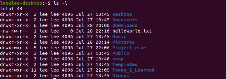 ls -l // 폴더나 파일의 포맷을 전부 표현하라