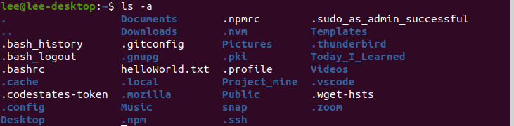 ls -a // 숨어있는 폴더까지 모든 항목을 보여줘라