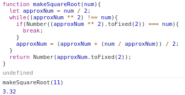 if(Number((approxNum ** 2).toFixed(2)) === num){