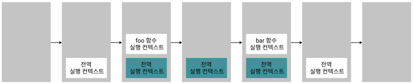 // bar()함수의 실행 컨텍스트가 push되고 실행되고 종료된다.