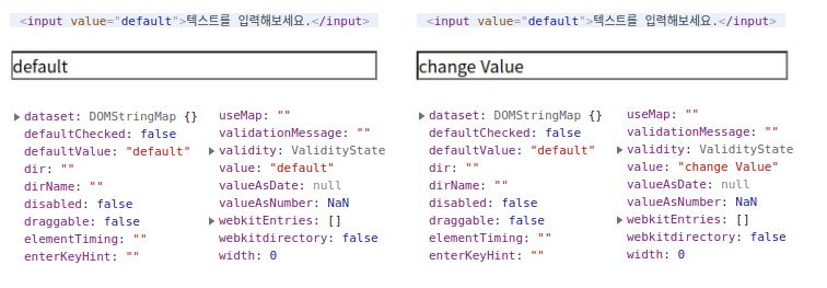 즉, attribute의 값은 변하지 않고, property는 (자바스크립트로 DOM을 조작했을 때) 값이 변할 수 있다.