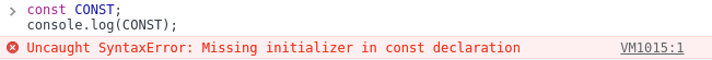 console.log(CONST); // SyntaxError: Missing initializer in const declaration