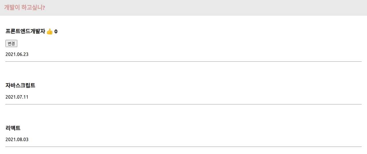 ์ ๋ชฉ์ด๋ ๋ ์ง ๋ณ๊ฒฝ์ useState ์ฐ์ตํ๋ค๊ณ ์๊ฐํ์ :)